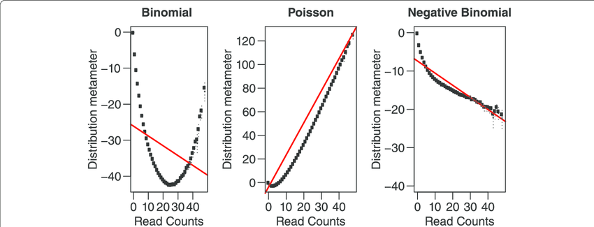 We can model scRNA-seq counts as a Negative Binomial (NB) distributed random variable. This captures overdispersion (variance > mean) in such count data which a Poisson distribution doesn’t. SCTransform method developed by Hafemeister & Satija (2019) uses this concept.